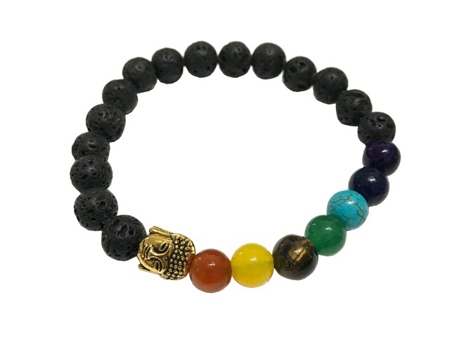 Náramek čakrový, lávový kámen, Buddha