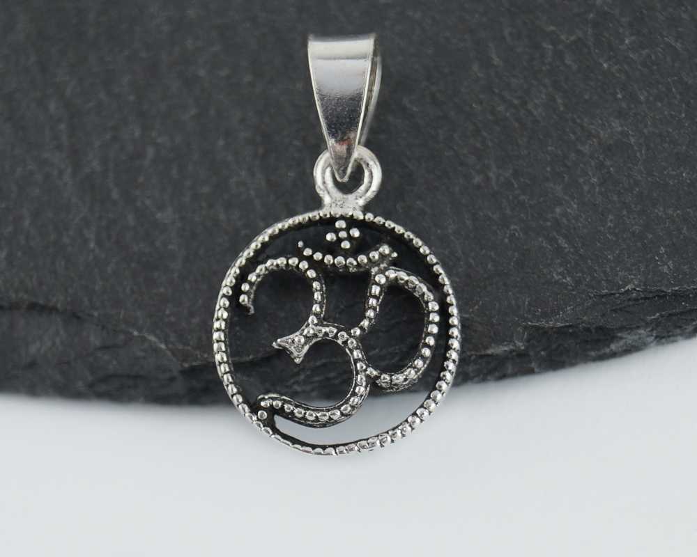 Stříbrný přívěsek Óm, tepaný - 14 mm