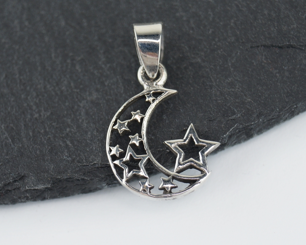 Stříbrný přívěsek Měsíc a hvězda - 25 mm