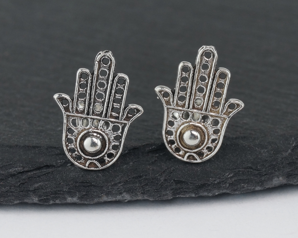 Stříbrné náušnice s puzetou - Hamsa (Ruka Fatimy)Náušnice jsou označeny puncem ryzosti. Ryzost: Ag 925/1000 Rozměry: 15 x 11 mmHmotnost: cca 0,55 g/kusStříbrná puzeta je součástí balení. Upozornění: všechny stříbrné šperky lze zakoupit pouze přes e-shop. Jsme registrováni u puncovního úřadu....