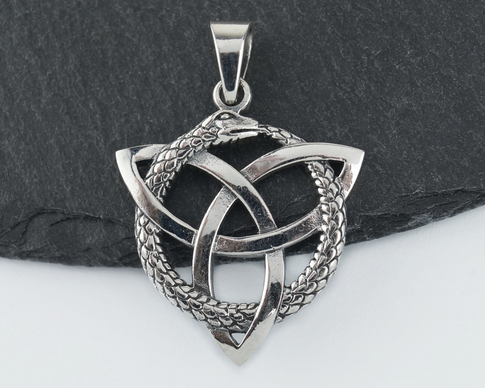 Stříbrný přívěsek Triquetra s hadem. Přívěsek je označen puncem ryzosti. Ryzost: Ag 925/1000 Celková délka: 36 mmŠířka: 26 mm Hmotnost: cca 6,15 g Upozornění: všechny stříbrné šperky lze zakoupit pouze přes e-shop. Jsme registrováni u puncovního úřadu. Veškeré informace naleznete zde. číst celé