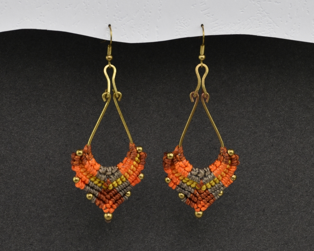 Ručně vyrobené drhané náušnice z voskovaného provázku, na kovovém základu, dozdobené drobnými preličkami.Každý pár těchto naušnic je jedinečný originál.