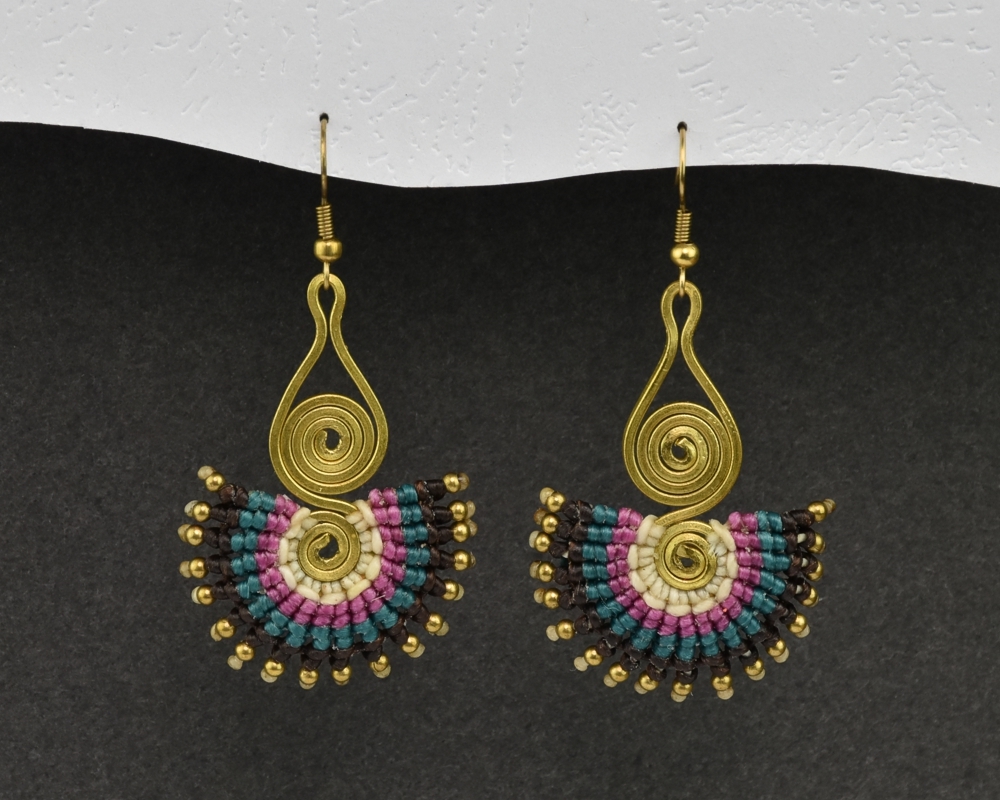 Ručně vyrobené drhané náušnice z voskovaného provázku, na kovovém základu, dozdobené drobnými preličkami rozzáří každou nositeku.Každý pár těchto naušnic je jedinečný originál.