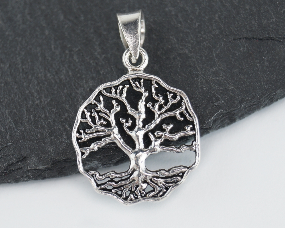 Stříbrný přívěsek Strom života, strukturovaný - 19 mm