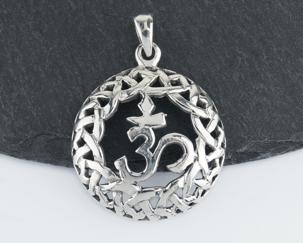 Stříbrný přívěsek ÓM ve zdobeném kruhu.Přívěsek je označen puncem ryzosti. Ryzost: Ag 925/1000 Průměr: 27 mm Hmotnost: cca 5,9 gUpozornění: všechny stříbrné šperky lze zakoupit pouze přes e-shop. Jsme registrováni u puncovního úřadu. Veškeré informace naleznete zde. číst celé