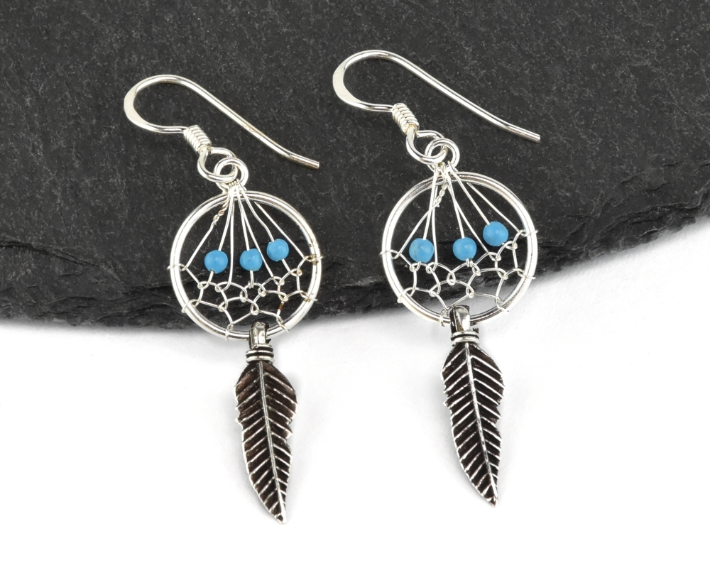 Stříbrné visací náušnice, Lapač snů modré kamínky