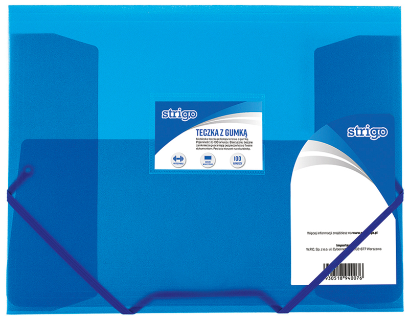 Teczka z gumką A4 PP niebieska, Strigo