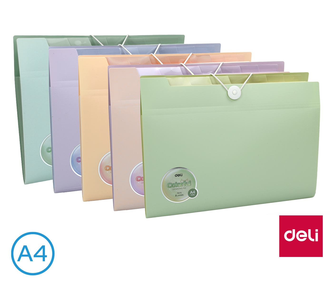 Desky na spisy A4 8 přihrádek DELI EF615 pastel mix