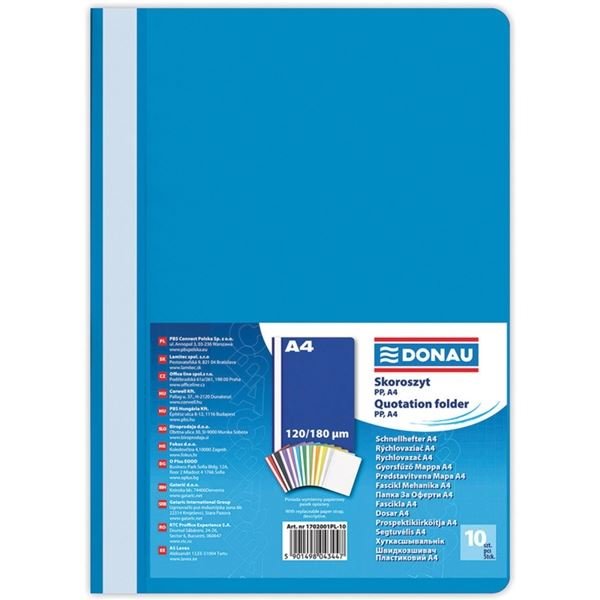 Plastové rychlovazače DONAU A4, modré, 10 ks