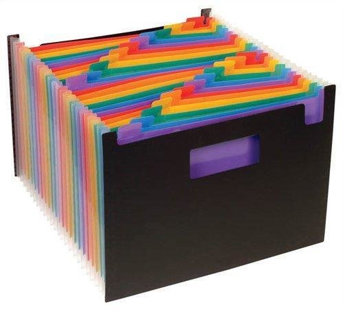 Vhodné pro uchovávání dokumentů A4 Z odolného, ??pružného polypropylenového materiálu Rejstříkový systém s popisovatelnými etiketami Vnější část černá barva, uvnitř barevné přihrádky Balení: 1 ks