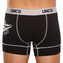 Boxerky UNCS přinesou styl a komfort mužům všech velikostí Pánské boxerky UNCS jsou navrženy tak, aby poskytovaly maximální pohodlí a atraktivní design ve všech velikostech. S moderním potiskem a kvalitními materiály jsou ideální volbou pro každodenní nošení i aktivní životní styl. Boxerky UNCS ti dodají sebevědomí a moderní vzhled v každé velikosti. Materiály, které se přizpůsobí tvým potřebám Tento model boxerek je vyroben z kvalitní směsi bavlny a elastanu, která zaručuje maximální komfort i při celodenním nošení. Jemná bavlna je šetrná k pokožce, výborně dýchá a poskytuje pocit lehkosti. Příměs elastanu dodává boxerkám pružnost, díky které se perfektně přizpůsobí tvému tělu a drží svůj tvar i po mnoha praních. Boxerky navíc neomezují v pohybu a vždy zajišťují dostatek pohodlí, ať už jsi v práci, doma nebo na cestách. Moderní střih a výrazný design Boxerky UNCS mají delší nohavičky, které zabraňují tření a poskytují extra podporu při pohybu. Vytkávaná guma v pase s logem UNCS drží pevně, ale přitom netlačí a zůstává pohodlná i po dlouhých hodinách nošení. Výrazný design dodává boxerkám osobitý vzhled a skvěle se hodí pro všechny muže, kteří mají rádi originalitu. Proč bys měl boxerky UNCS vyzkoušet Stylový potisk: Moderní design s kontrastními prvky dodává boxerkám atraktivní vzhled. Delší nohavičky: Poskytují pohodlí a minimalizují tření při pohybu. Vytkávaná guma s logem UNCS: Pohodlný pas, který pevně drží, ale zároveň netlačí. Spodní prádlo UNCS pro milovníky extravagance Spodní prádlo pro muže od značky UNCS vyniká především pohodlnými materiály a jednoduchými střihy. Vždycky se ale můžeš těšit na zajímavý detail, který boxerkám UNCS dodává moderní vzhled, který ti zvedne náladu i sebevědomí. Značka UNCS myslí na muže všech velikostí, takže si můžeš vybírat až do velikosti 5XL. Jak pečovat o své boxerky UNCS? Aby ti boxerky dlouho vydržely jako nové, doporučujem dodržovat následujícíc pokyny k údržbě. Praní: Doporučujeme prát na 30 °C s jemnými pracími prostředky, aby si materiál zachoval svou kvalitu. Sušení: Nesuš v sušičce - doporučujeme sušení na vzduchu, nejlépe ve stínu, aby barvy nevybledly a materiál zůstal měkký. Žehlení: Boxerky můžeš žehlit na nejnižší stupeň, ale není to potřeba. Doporučujeme žehlit po rubu. Tip: Staň se odborníkem na údržbu spodního prádla díky