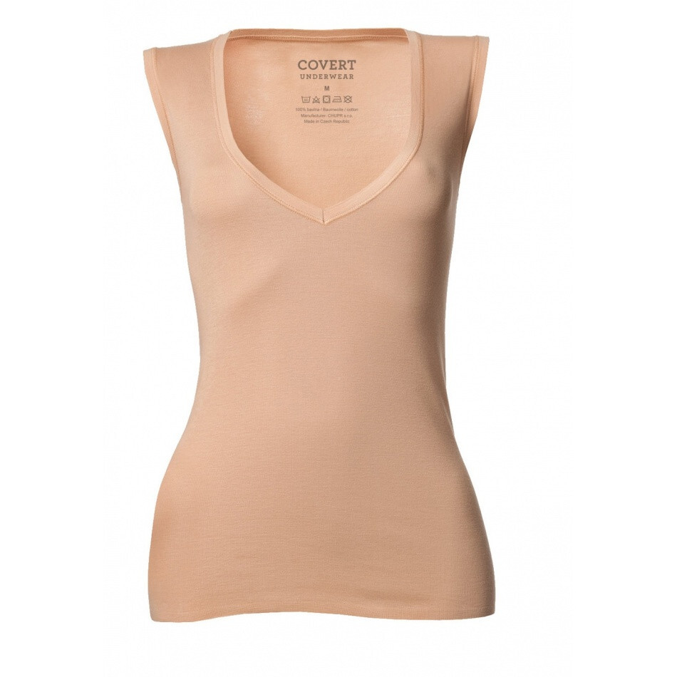 Dámské tílko Covert Hledáte tílko, které je pod oblečením neviditelné? Pak je toto tílko české značky Covert tou pravou volbou! Neviditelné dámské tílko pod košili nebo halenku perfektně kryje prádlo, svým střihem dokonale překryje ramínka podprsenky. Je určeno k nošení namísto klasické košilky. Provedení s naprosto plochými okraji zaručí dokonalou neviditelnost i pod tou nejtenčí halenkou. Co se praní týče - naše doporučení je prát maximálně na 60°C a sušit je v sušičce na nízkou teplotu, jinak se může stát, že už tílko nebude možné nosit.