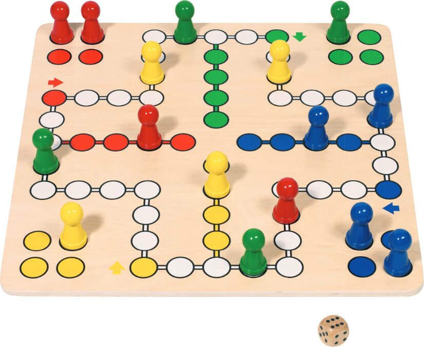 Oblíbená desková hra Člověče, nezlob se! Hrací deska je dřevěná.