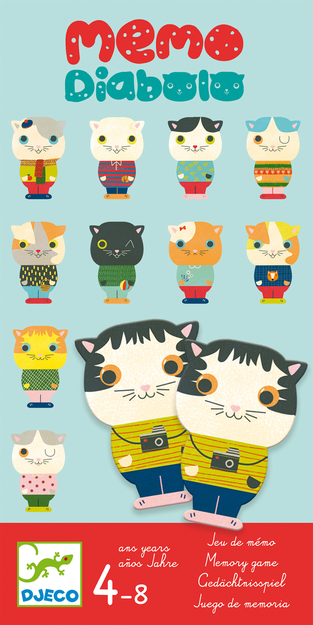 Krásné kočičí pexeso procvičí paměť velkým i malým hráčům. Pro hráče od 4 do 8 let. Všechny karty ve tvaru kočiček se otočí lícovou stranou dolů a můžeme začít hrát. Střídají se dva až čtyři hráče ve směru hodinových ručiček a každý hráč má za úkol nasbírat co nejvíce stejných dvojic. Ale pozor, pokud neuhodnete umístění druhé karty odpovídající dvojice, pokračuje další hráč. Rozměry balení: 10,5 x 21,5 x 3,5cm.