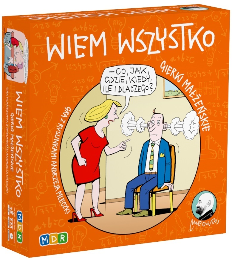 Wiem wszystko to planszowa wersja teleturnieju, w którą można grać we dwoje lub parami, w większym gronie znajomych. Pytania nawiązują do najsłynniejszych formatów show telewizyjnych i odnoszą się do najróżniejszych dziedzin.