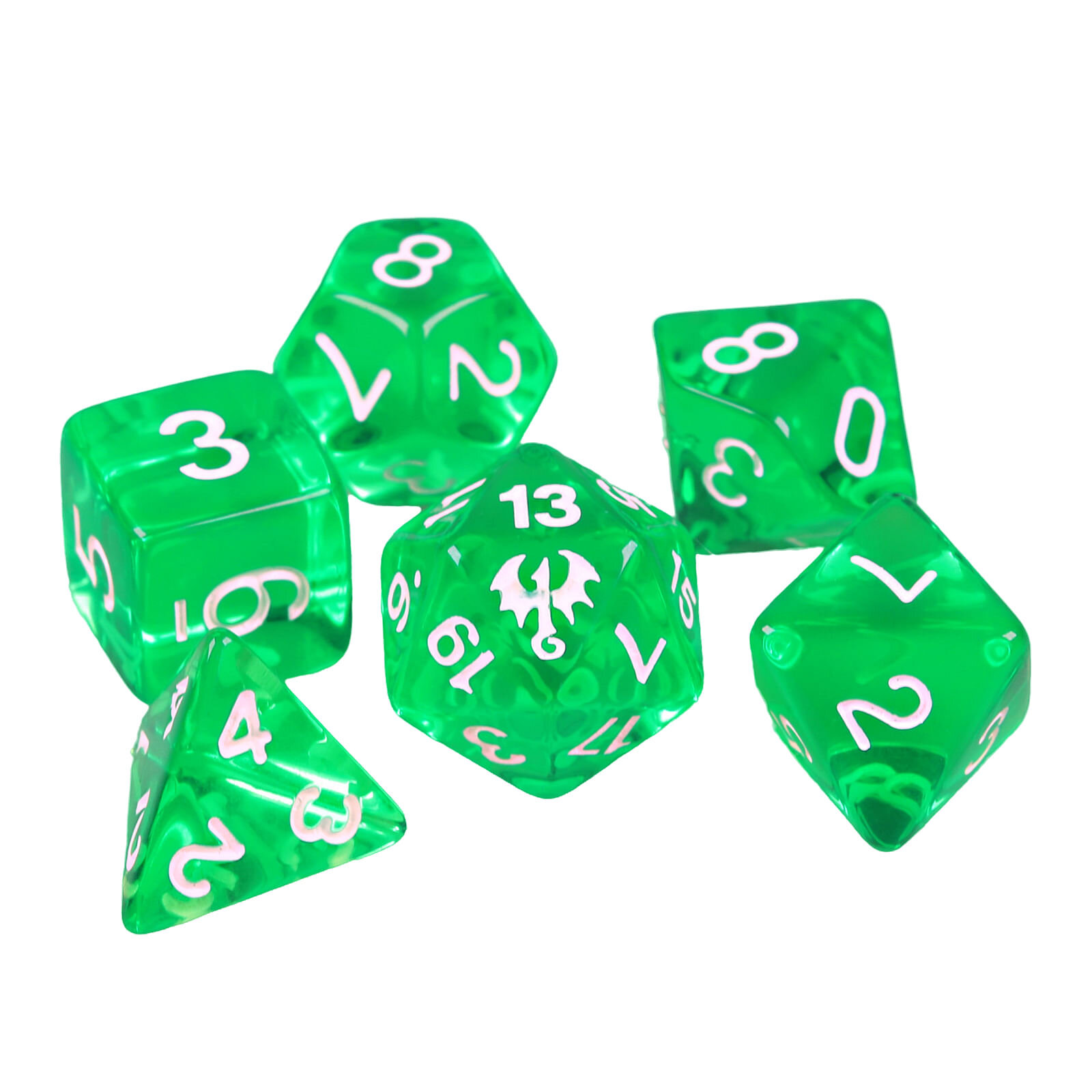 Rozšiř svou sbírku herních pomůcek s touto sadou 6 průhledných mnohostěnných kostek, speciálně navržených pro švédskou hru na hrdiny Dragonbane RPG. Dvacetistěnná kostky má na 1 obrázek draka a na 20 obrázek démona. Díky jejich preciznímu zpracování a elegantnímu vzhledu bude každá hra ještě více vzrušující a vizuálně poutavá. Připrav se na nezapomenutelná dobrodružství s těmito unikátními kostkami! Sada obsahuje k4, k6, k8, k10, k12 a k20.