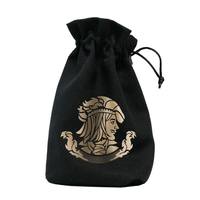 Černý bavlněný váček na kostky se zlatým symbolem barda Marigolda, věrného přítele zaklínače Geralta z Rivie. Pytlík se stahuje pomocí tkaničky s brzdou a pojme až pět sad kostek.Materiál: bavlna