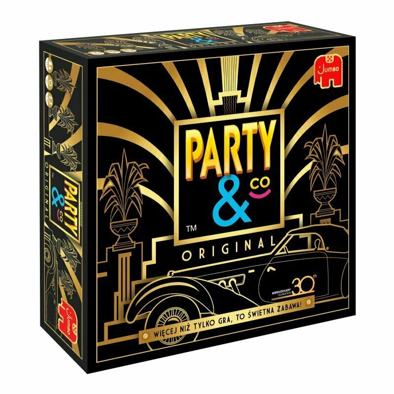 „Party & Co Original” to imprezowa gra towarzyska. Z nią każde spotkanie towarzyskie czy wieczór gier zamieni się w szaloną zabawę pełną śmiechu. Łączy najlepsze cechy najprzyjemniejszych gier planszowych. Jej celem jest poruszanie się po planszy i wykonanie 5 różnych typów zadań, każde w ciągu 30 sekund. Dostępna jest z 2000 nowych zadań i pytań. Rozpocznij grę, a nie będziesz mógł przestać grać lub się śmiać. Czeka Cię 5 typów zadań: pytania, naśladowanie, zakazane słowa, na trzy cztery oraz rysowanie - nidgy nie wiesz, na co trafisz.Zawartość gry:- 400 kart (2000 zadań i pytań),- 4 pionki w kształcie gramofonów,- 20 płyt z punktami,- 1 plansza do gry,- 1 30-sekundowa klepsydra,- 1 notatnik do rysowania,- 1 ołówek,- 1 kostka do gry,- zasady gry.Gra dla 3 do 20 osób, jedna rozgrywka trwa ok. 45 minut.Wymiary opakowania: 27x27x6cmWiek: 14+