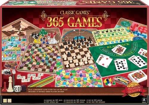 Tato obrovská sbírka her nám umožňuje každý den v roce vyzkoušet novou deskovou hru. Pro malé i velké, dospělé i děti Opravdová rodinná kolekce. Krabice obsahuje 10 oboustranných herních desek. Šachy, mlýn, poker, domino, kdo se směje na konci, vrhcáby, solitaire, hadi a žebříky, améba, logické hádanky... Není možné je všechny vyjmenovat, je jich tolik.