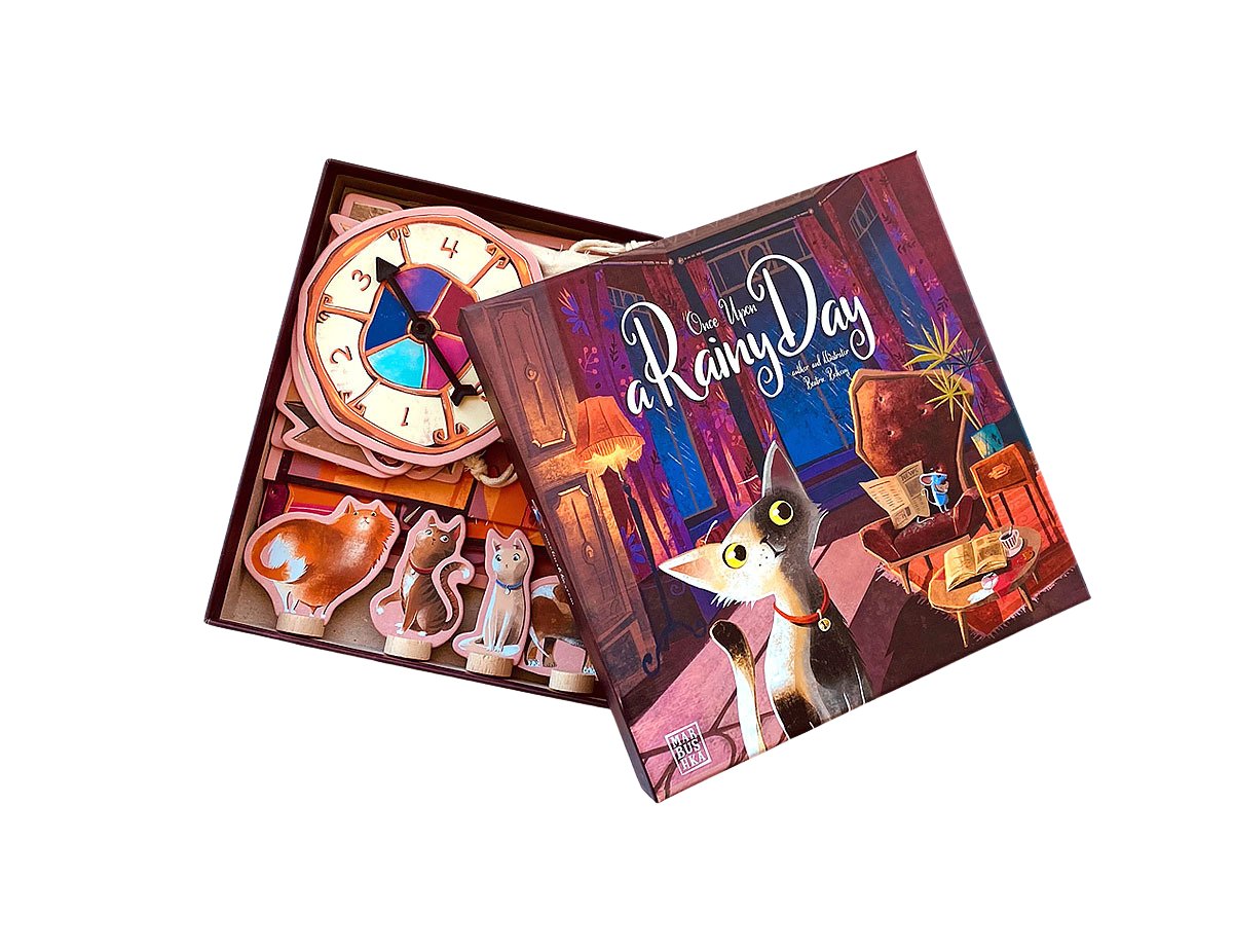 Obsah hry: 1 herní deska, střelka se šipkou, 4 kočky, 1 pec, 4x4 myší žetony, 4 předměty a 20 karet štěstí.