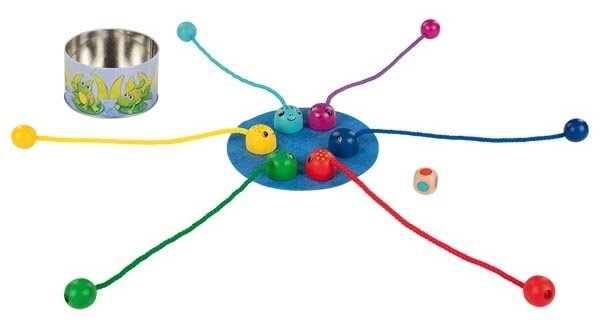 Hra v praktické kovové krabičce. Ať už doma, nebo na cestách - stoprocentní zábava je zaručena. Chytač pomocí plechovky loví žábu podle hozené barvy. Každý hráč musí dávat pozor, která barva padla, a snaží se s žábou prchnout. Ostatní žáby musí zůstat v jezírku. Opustí-li jezírko žába jejíž barva nebyla hozena, vypadává ze hry. Rozměry: ∅ 9 cm, výška 5 cm. Plechovka obsahuje: 6 žabek, 1 barevnou kostku, 1 jezírko z filcu, návod. GOKI patří mezi nejvýznamnější evropské výrobce hraček s vysokou pedagogickou a didaktickou kvalitou. Firma klade důraz na bezpečnost hraček, jejich zdravotní nezávadnost a dbá na obnovitelné zdroje. Dřevo je bráno tam, kde může dorůstat.