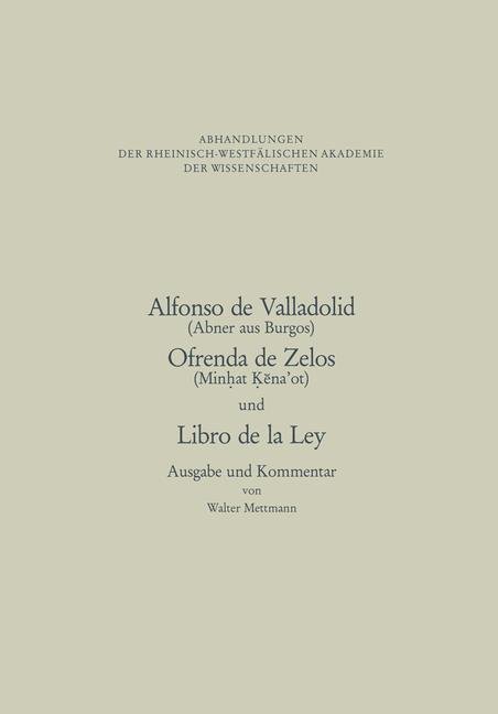 Alfonso de Valladolid. Ofrenda de Zelos. und Libro de la Ley (německy)
