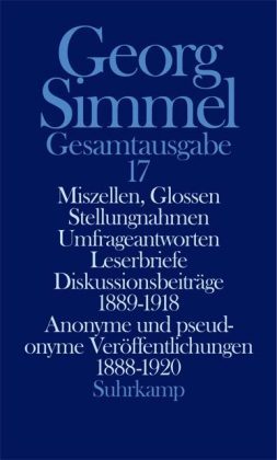 Der neue Band der Gesamtausgabe enthält eine Vielzahl kleinerer Texte von Georg Simmel, die bisher kaum bekannt oder nur schwer zugänglich sind. Darunter sind Miszellen, Glossen und Stellungnahmen, aber auch überraschende politische Diskussionsbeiträge, Umfrageantworten und Leserbriefe. Dazu...