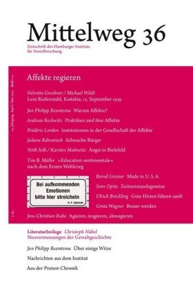 Valentin Groebner, Michael Wildt: Leni Riefenstahl, Konskie, 12. September 1939. Hinschauen, fühlen, fotografiert werden (S. 5-14) / Jan Philipp Reemtsma: Warum Affekte? (S. 15-26) / Andreas Reckwitz: Praktiken und ihre Affekte (S. 27-45) / Frédéric Lordon: Institutionen in der Gesellschaft der...