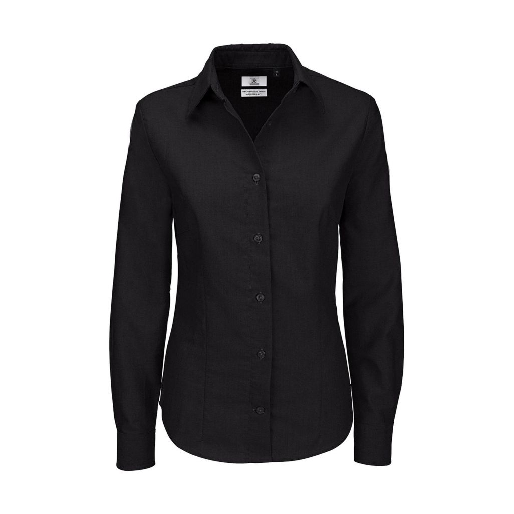 Košile dámská B&C Oxford s dlouhým rukávem - černá, XS