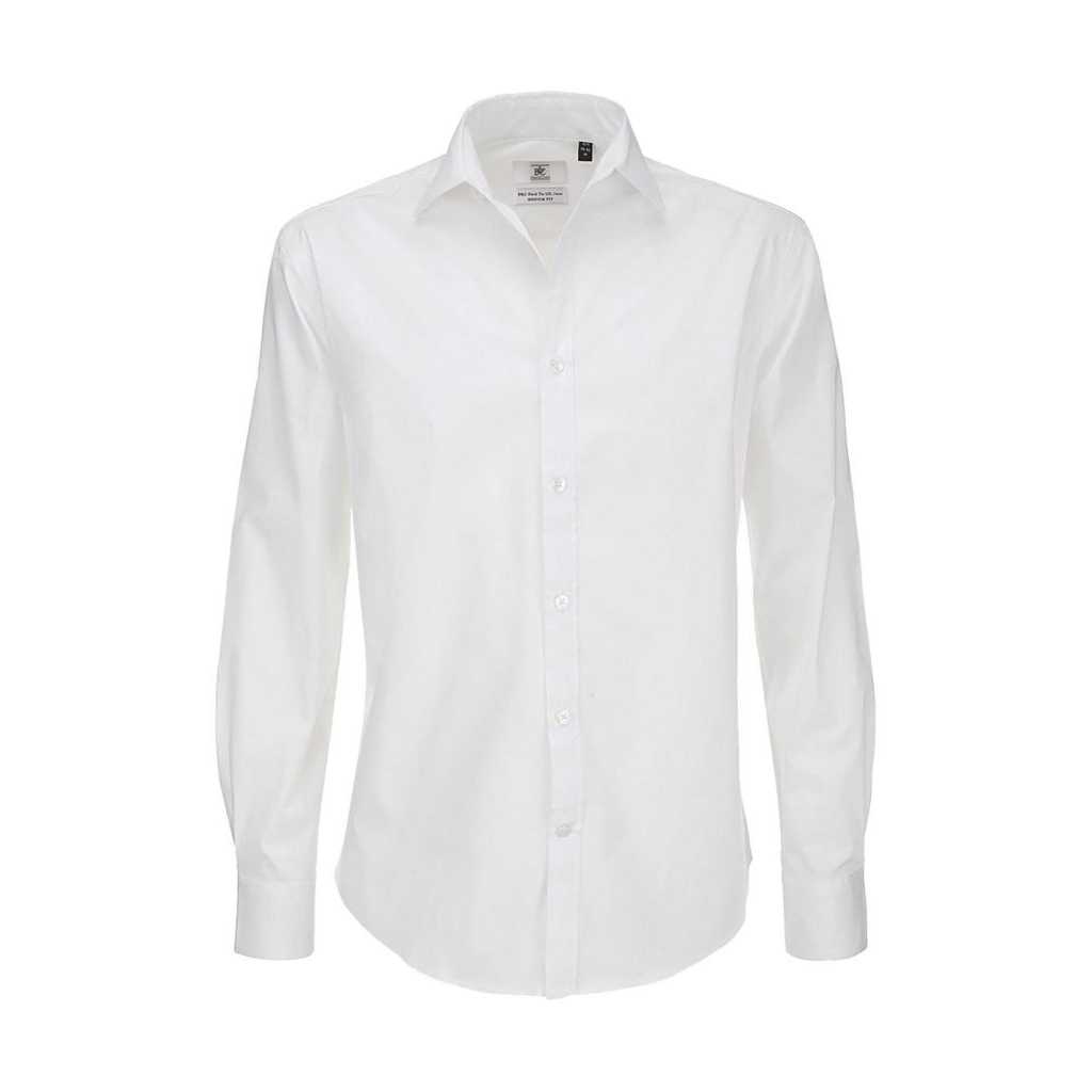 Košile pánská B&C Elastane s dlouhým rukávem - bílá, 3XL
