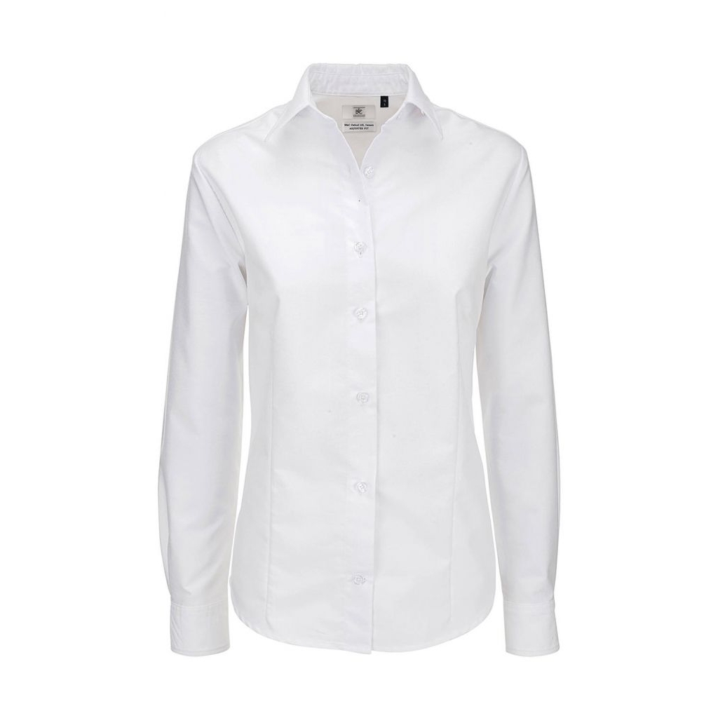 Košile dámská B&C Oxford s dlouhým rukávem - bílá, 3XL