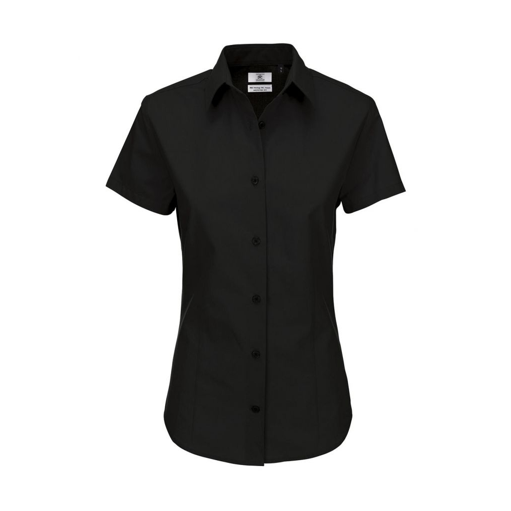 Košile dámská B&C Heritage s krátkým rukávem - černá, XS