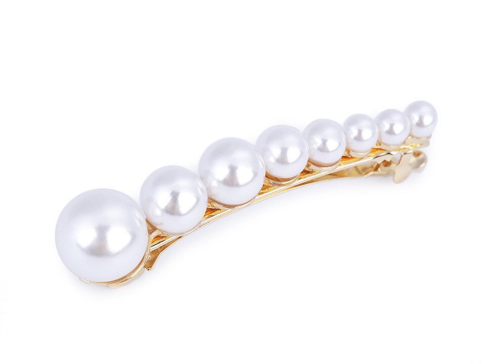 Francouzská spona do vlasů s perlami a broušenými kamínky - 1 ks - 2 perlová zlatá