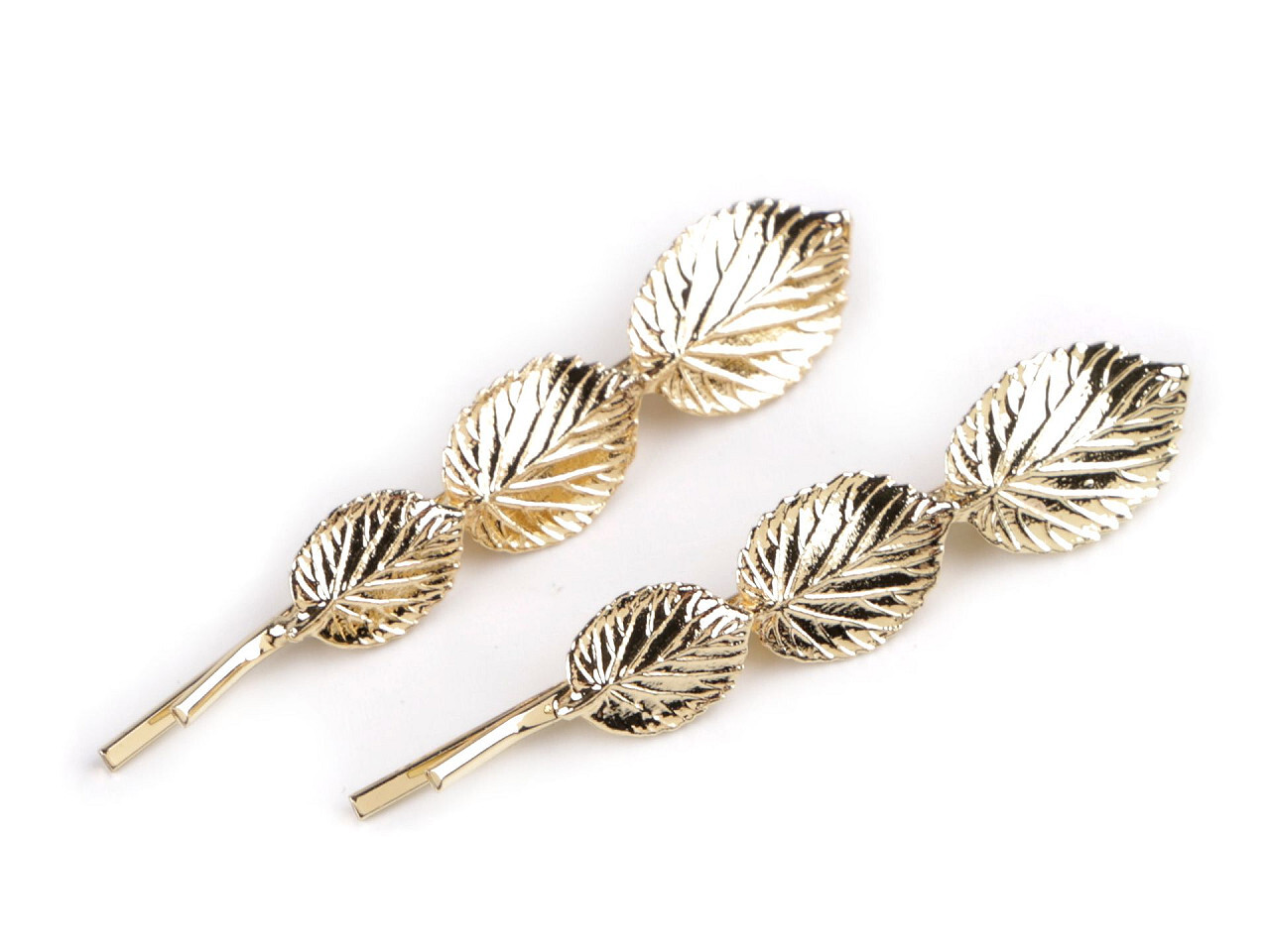 Sponky do vlasů / pinetky listy - 2 ks - 2 zlatá sv.