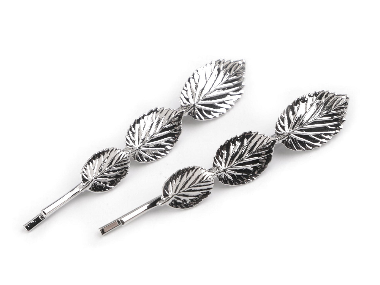 Sponky do vlasů / pinetky listy - 2 ks - 1 stříbrná