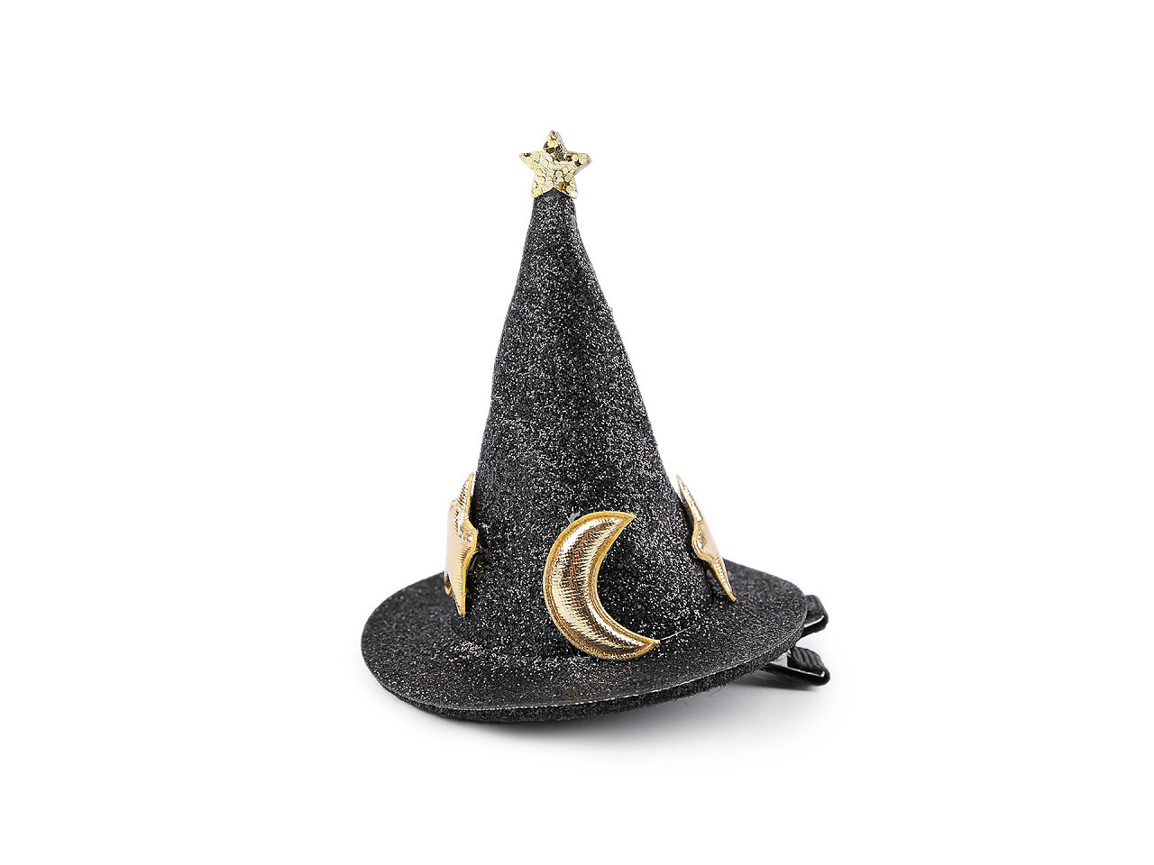 Sponka do vlasů čarodějnický klobouk - 1 ks - černá zlatá