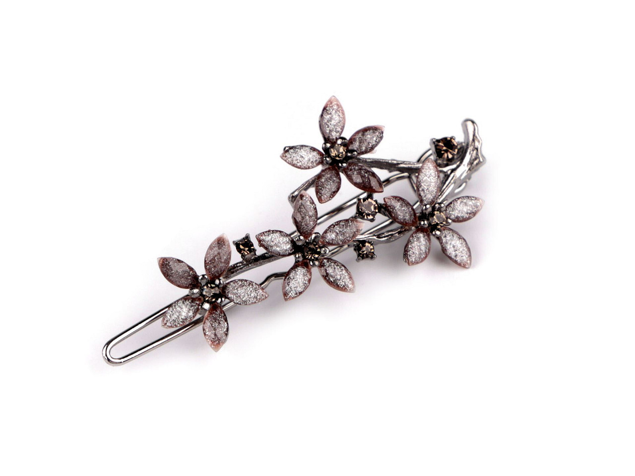 Sponka do vlasů s broušenými kamínky květy - 1 ks - 1 black diamond