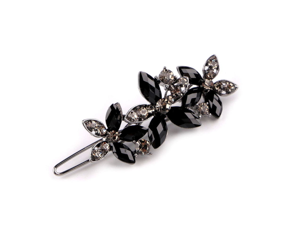 Sponka do vlasů s broušenými kamínky květy - 1 ks - černá
