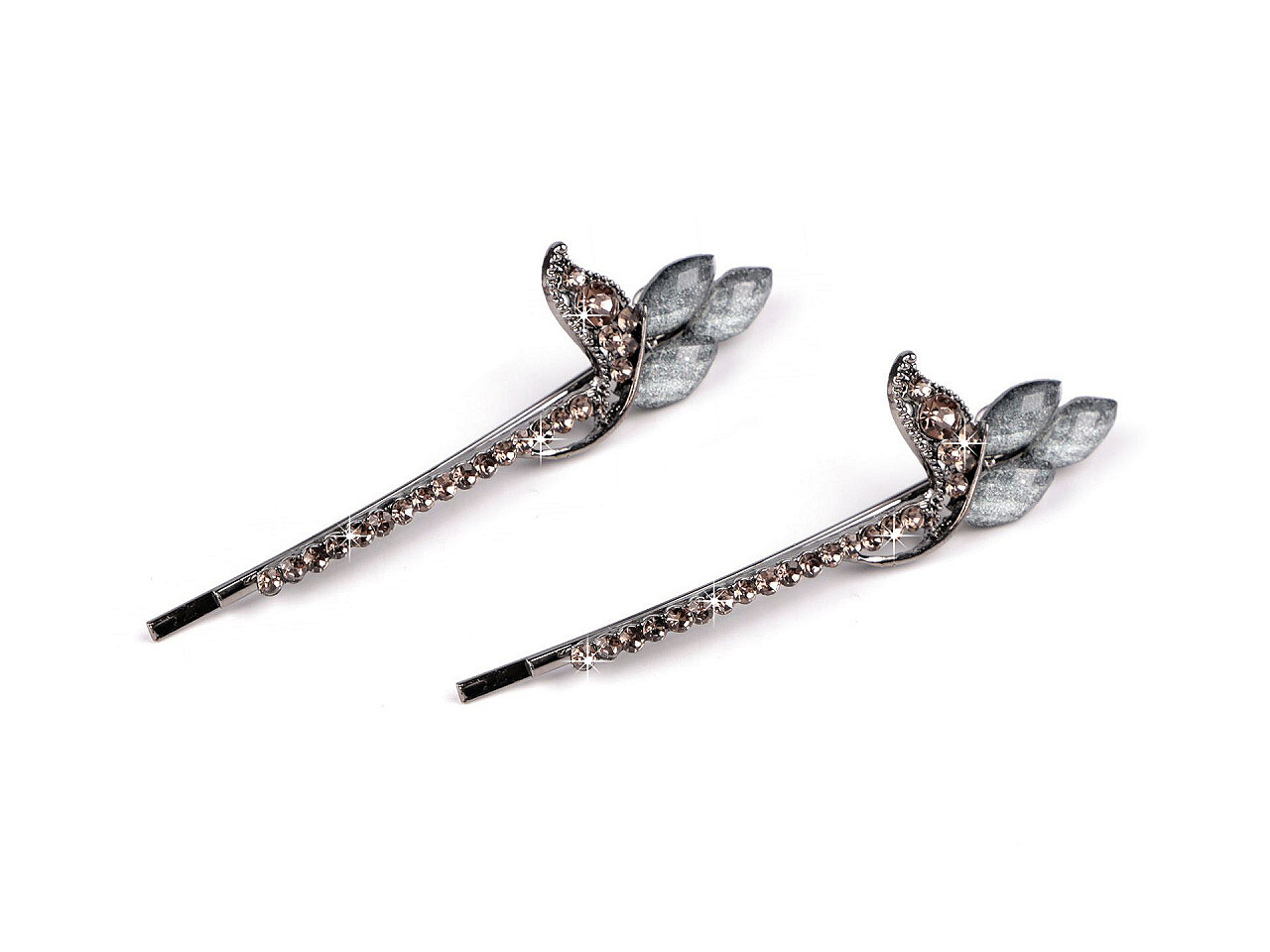 Sponky do vlasů / pinetky s broušenými kamínky - 2 ks - modrošedá