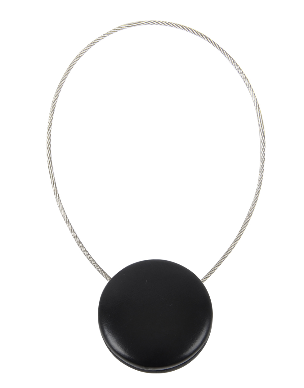 Stylová dekorativní ozdobná spona s magnetem na sepnutí záclon a závěsů. Spona se spíná silným magnetem na zadní straně a je spojena ocelovým lankem. je potažená imitací kůže. Průměr spony je 3,5 cm, lanko je dlouhé 23 cm. číst celé