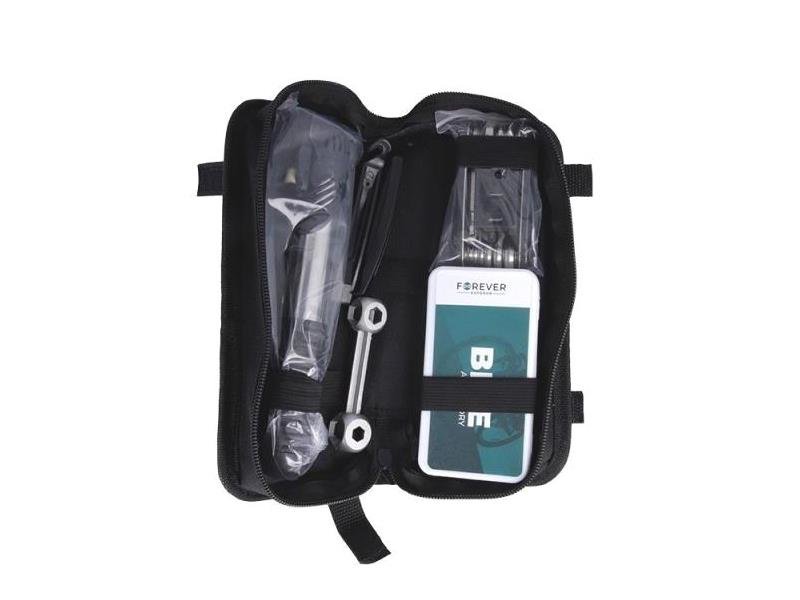 Sada na opravu jízdních kol Forever Outdoor Multifunkční sada na opravu jízdních kol v praktickém pouzdře, které lze připevnit pod rám. V případě jakýchkoli problémů s provozem vozidla vám nářadí, které je součástí sady, umožní závadu odstranit.