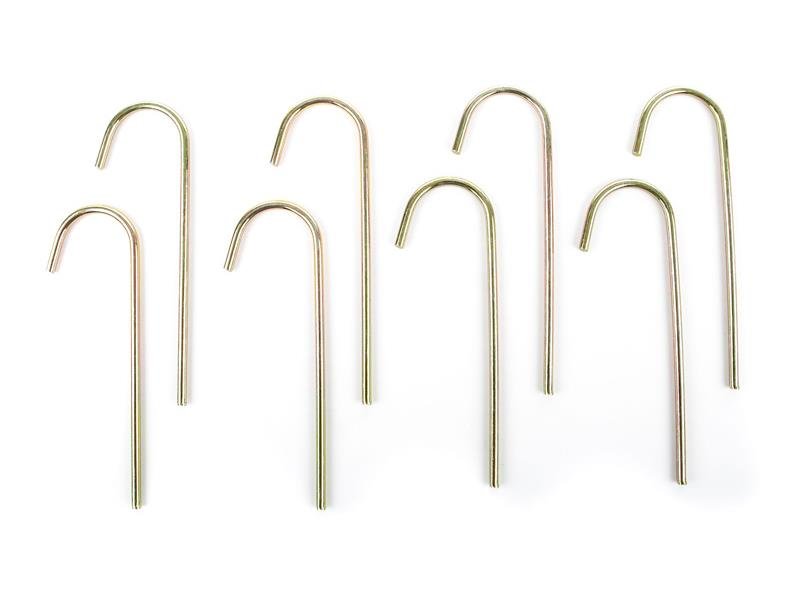 Háčky z pevné a kvalitní oceli jednoduše zajistí trampolínu a pevně ji zafixují k zemi. Přestože jsou trampolíny G21 bytelné a stabilní, další pojistka nikdy neuškodí. Použitím kotvící sady G21 spolehlivě připevníte trampolínu a zajistíte ji před případným náhlým a prudkým poryvem větru.