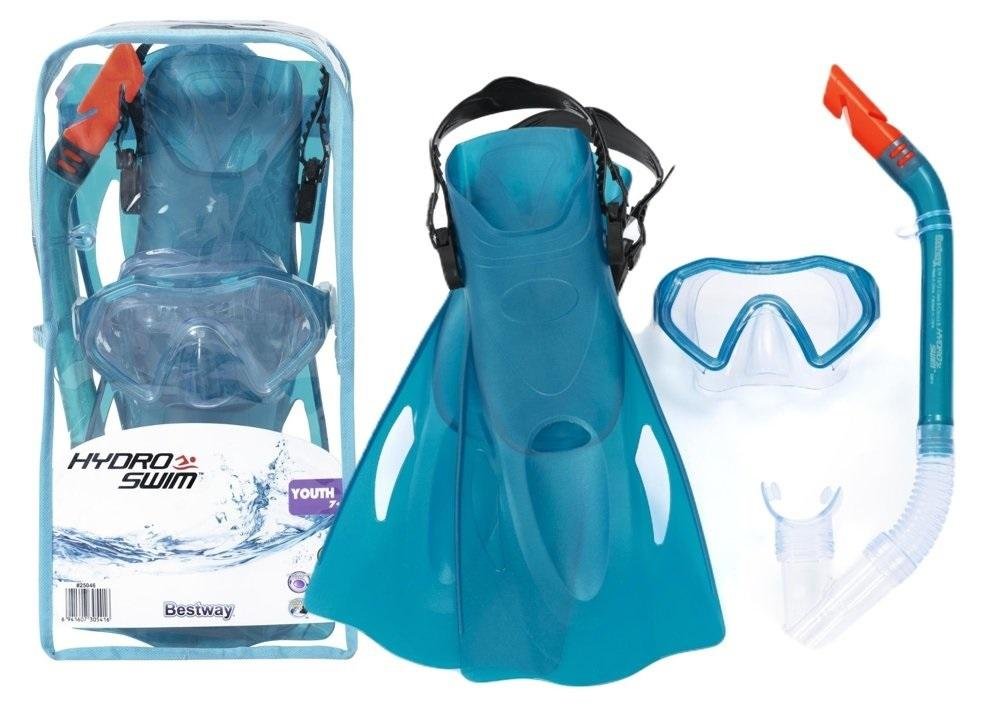 Dziecięcy Zestaw Do Nurkowania Niebieski Maska, Płetwy, Rurka Bestway 25046 Idealne akcesoria do podwodnych zabaw Twojego dziecka możesz mieć już teraz na wyciągnięcie ręki. Zaopatrz swoją pociechę w ten wyjątkowy zestaw do nurkowania, który zapewni mu niezapomnianą zabawę podczas letnich dni. Zestaw ten przeznaczony jest dla dzieci w wieku od 7 lat. Maska jest wykonana z soczewek chroniących przed promieniami UV. Ma również miękką otoczkę wokół maski i wygodnie przylega do twarzy dziecka zapobiegając przedostawaniu się wody do okularów. Na głowie znajduję się również regulowany pasek, który możesz odpowiednio dostosować do głowy twojego dziecka. Zapewnia ona również stabilność podczas podwodnych przygód. Miękkie płetwy, które nie zsuwają się ze stóp i idealnie pasują na rozmiar 37-41. Rurka wyposażona jest w technologie suchej fajki dzięki czemu woda nie przedostaje się do środka. Główne cechy: - Podwójna krawędź zapewnia dokładne i szczelne dopasowanie - W pełni regulowany podwójny pasek na głowę - Technologia suchej fajki zapobiega zachłyśnięciu się wodą - Dopasowany kształt ustnika rurki - Miękkie, sprawdzone pod kątem komfortu płetwy w rozmiarze: 37-41 EUR - Regulowany pasek na pięcie - Bez lateksu - Przeznaczony dla dzieci od 7 roku życia. Waga: 1 kg Wymiary opakowania: ok. 18 cm x 13 cm x 5 cm