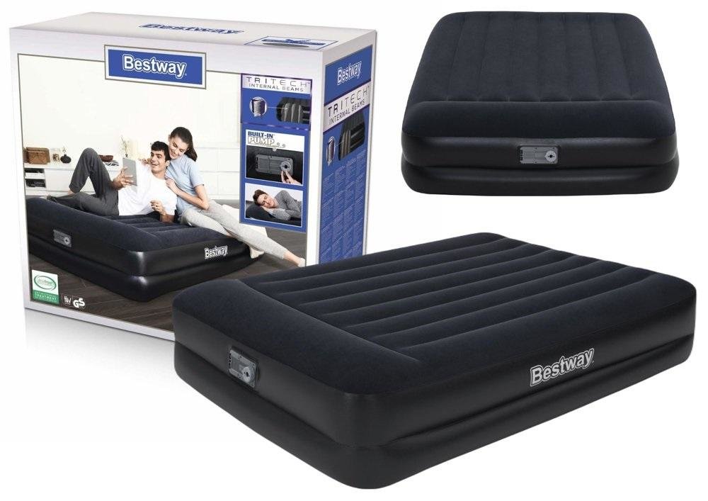 Dmuchany Materac 203 x 152 x 46 cm Bestway 67403 Dwuosobowy materac turystyczny przeznaczony jest do użytku zarówno wewnętrznego jak i zewnętrznego. Został wykonany z wytrzymałego materiału, dzięki czemu jest odporny na uszkodzenia. W swojej górnej części pokryty jest miękkim flokowanym materiałem. Materac dopasowuje się do ciała i idealnie sprawdzi się pod namiotem lub w domu jako zapasowe łóżko dla gości. Dzięki wbudowanej pompce materac zostanie samoczynnie napompowany w 4 minuty, co będzie dla Ciebie wygodnym rozwiązaniem. Rano zawór śrubowy szybkiego odpowietrzania umożliwia łatwe spuszczenie powietrza. Wystarczy umieścić spłaszczony materac w dołączonej torbie transportowej, aby ułatwić transport i przechowywanie.Dzięki wygodnej powierzchni do spania i solidnej konstrukcji oraz wbudowanej poduszce wspaniały sen jest na wyciągnięcie ręki. Wewnętrzna struktura tego łóżka jest wykonana z materiału Tritech, który zapewnia trwałość i wytrzymałość, a jednocześnie pozwala materacowi zachować ten sam kształt bez względu na to, ile razy jest napompowywany i opróżniany. W skład zestawu wchodzi: - Materac z wbudowaną pompką - Łatka naprawcza - Materiałowa torba Dane techniczne: - Wymiary: 203 x 152 x 46 cm - Maksymalne obciążenie 300 kg - Zawór bezpieczeństwa - Wbudowana pompka 220-240V dzięki czemu materac jest napompowany już w 4 minuty - komfortowa miękka powierzchnia pokryta materiałem - Konstrukcja Y-beam - wytrzymały materiał - wbudowana poduszka Waga: 7 kg Wymiary opakowania: ok 20 cm x 14 cm x 37 cm