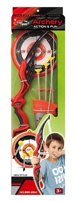 Duży łuk na strzałki z przyssawkami.Idealna zabawka na świeże powietrze.Uczy koordynacji, celności i cierpliwości.Zestaw zawiera:- 1 łuk- 3 strzałki na przyssawki- tarczę- kołczan na strzały