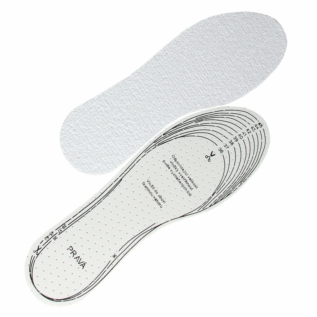 Mäkká odstrihávacia stielka do obuvi Silver Frote Sport veľkosť 36 - 46 z určená do športovej obuvi, froté povrch účinne absorbuje vlhkosť vo vnútri obuvi a zmierňuje nárazy a zmäkčuje došľap. Podloženie latexom bráni zhrňovanie stielky pri športovej záťaži.