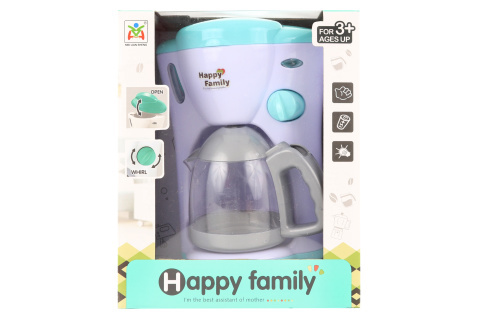 Plastový kávovar na baterie. Napájení na 2 AA baterie (nejsou součástí). Kávovar vydává zvuky a svítí stejně jako při přípravě kávy. Rozměry balení cca 19,5 x 24 x 14,5 cm. Věk 3+ číst celé
