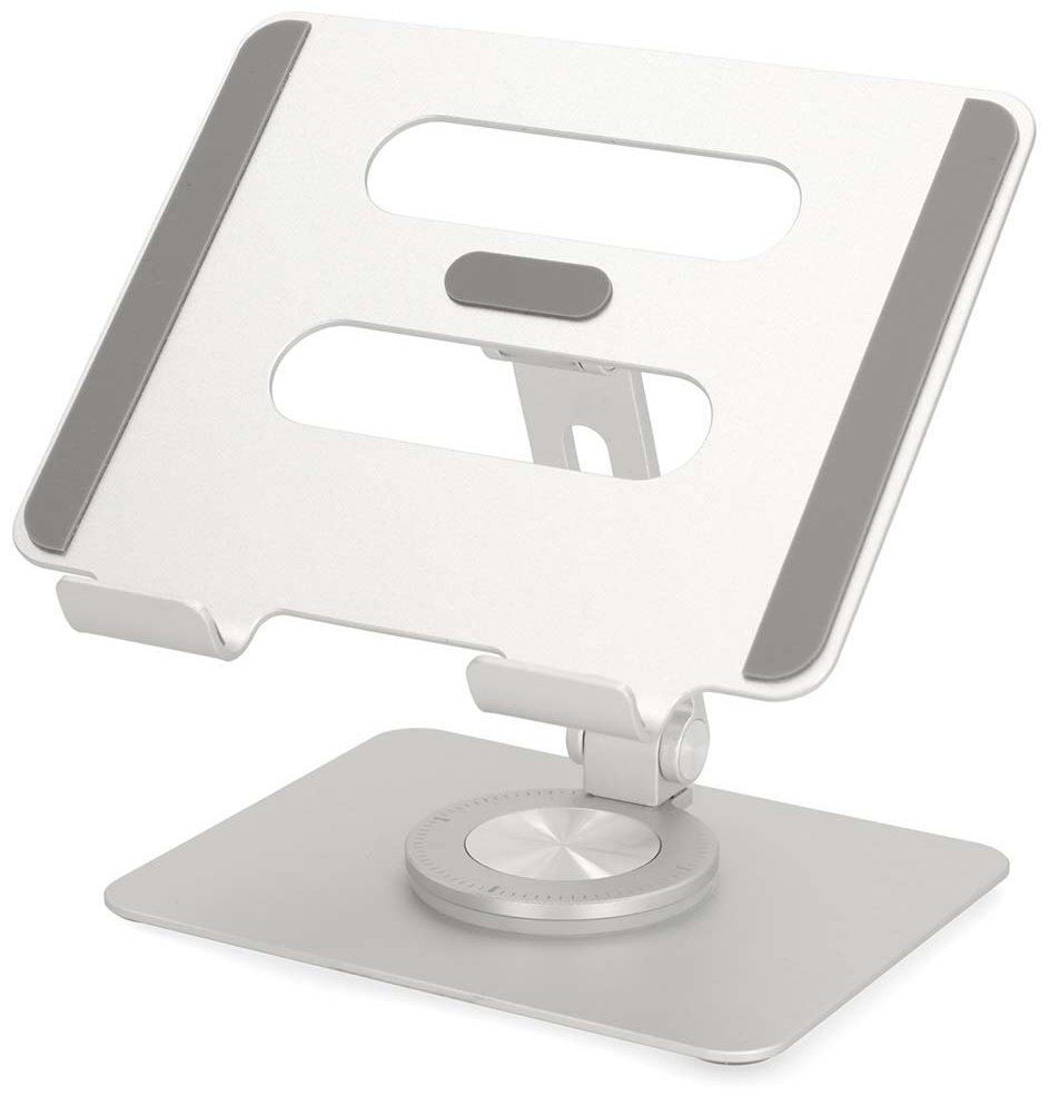 360° otočný stolní stojan pro tablety je dokonalým společníkem pro bezproblémovou interakci se zařízením. Skládací konstrukce zajišťuje přenosnost, takže jej lze bez námahy vzít kamkoli s sebou. Je možné si nastavit výšku a úhel pro optimální polohu sledování, čímž zlepšíte svůj multimediální zážitek. Robustní hliníková konstrukce s kruhovou základnou zajišťuje stabilitu a protiskluzové podložky zaručují, že stojan zůstane bezpečně na svém místě a zabrání nežádoucímu posunutí.