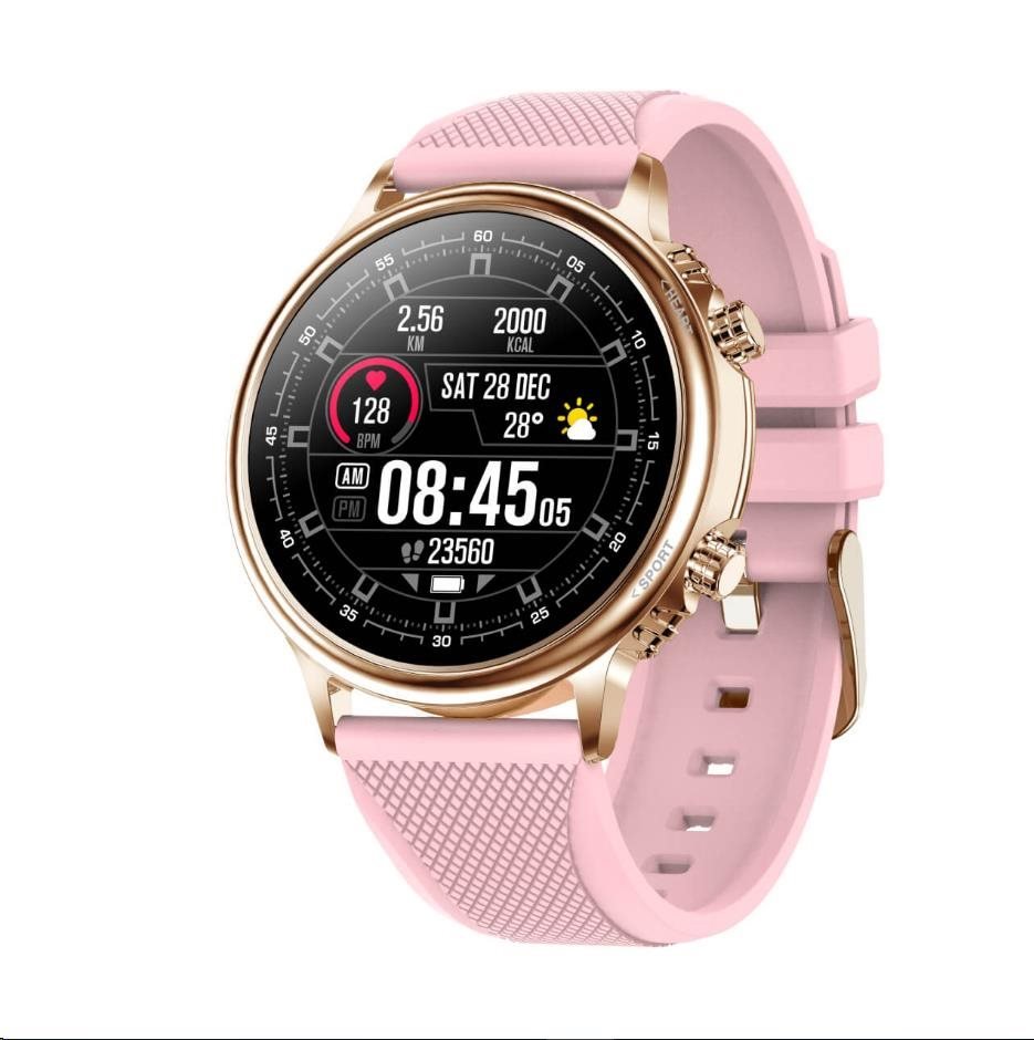 Moderní, manažerské fitness smart hodinky CARNEO Prime Slim v elegantním zlatém provedení disponují kulatým IPS barevným displejem, který lze aktivovat jednoduchým otočením ruky. Umožňují měření srdečního tepu, ujeté vzdálenosti, monitorování spálených kalorií či kvality spánku. Jejich součástí je baterie s výdrží cca 4-6 dní. Podle certifikace IP67 jsou odolné vůči vodě a prachu. Jsou kompatibilní s operačním systémem iOS a Android. Silikonový řemínek s kovovou přezkou je příjemný na dotek a zaručuje komfort během celého dne.