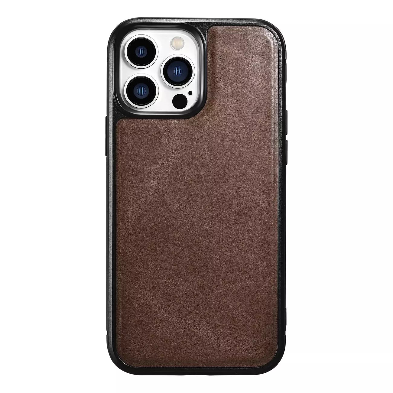 Kožené pouzdro pro iPhone 13 Pro Max - iCarer - Oil Wax case - hnědé